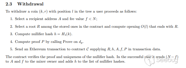 当存款者在取钱的时候,则可以通过提供该凭据进行取出,但是这里不禁有人会问,仿佛没有体现零知识证明?