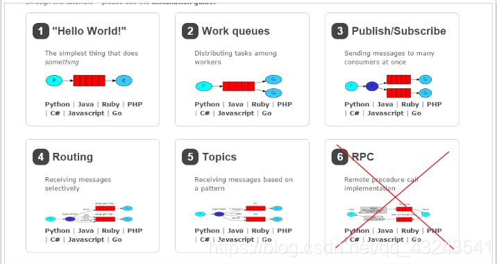 官方教程:http://www.rabbitmq.com/getstarted.html