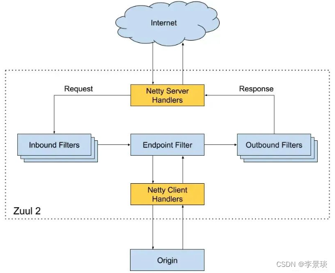 上图是 Zuul2 的架构,和 Zuul1 没有本质区别,两点变化: