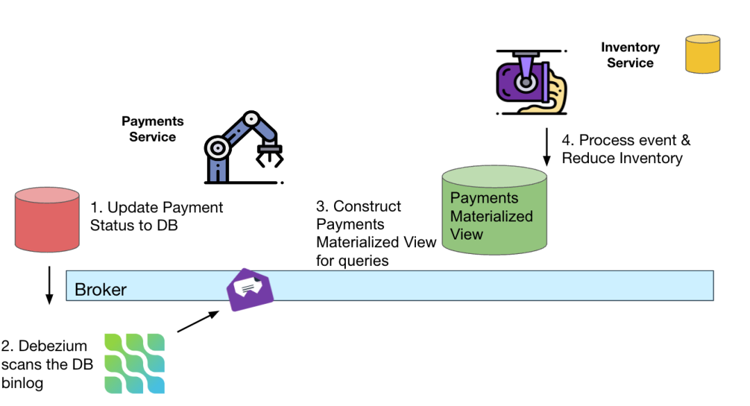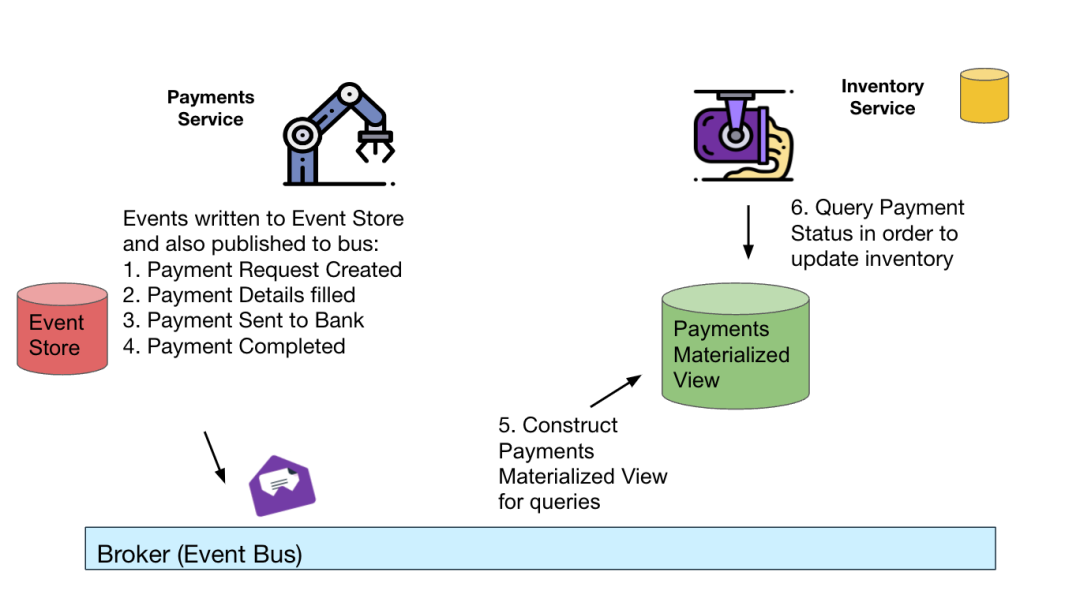 这些事件也被发布到事件总线上,其他服务也可以在其他数据库上创建物化视图,这些数据库通过重放事件优化查询。