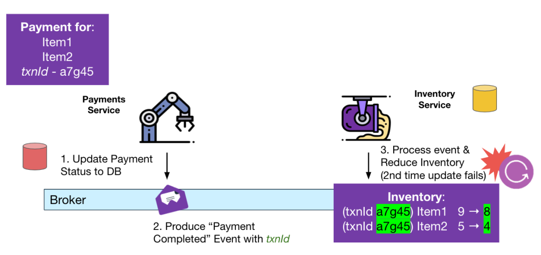 特别是在使用 Kafka 时,有可能配置精确一次语义,但由于某些故障,数据库更新仍然可能出现重复。在这种情况下,txnId 可以是主题 - 分区 - 偏移量三元组,这样可以保证 id 是唯一的。