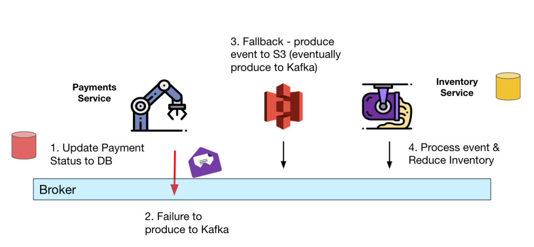 有几种方法可以缓解这个问题。在 Wix,我们使用了两种方式。第一种是使用我们自己的消息平台 Greyhound(https://github.com/wix/greyhound#greyhound),我们通过弹性生产者确保事件最终被写入 Kafka。这种缓解措施的缺点是最终可能会导致对下游事件的无序处理。Greyhound