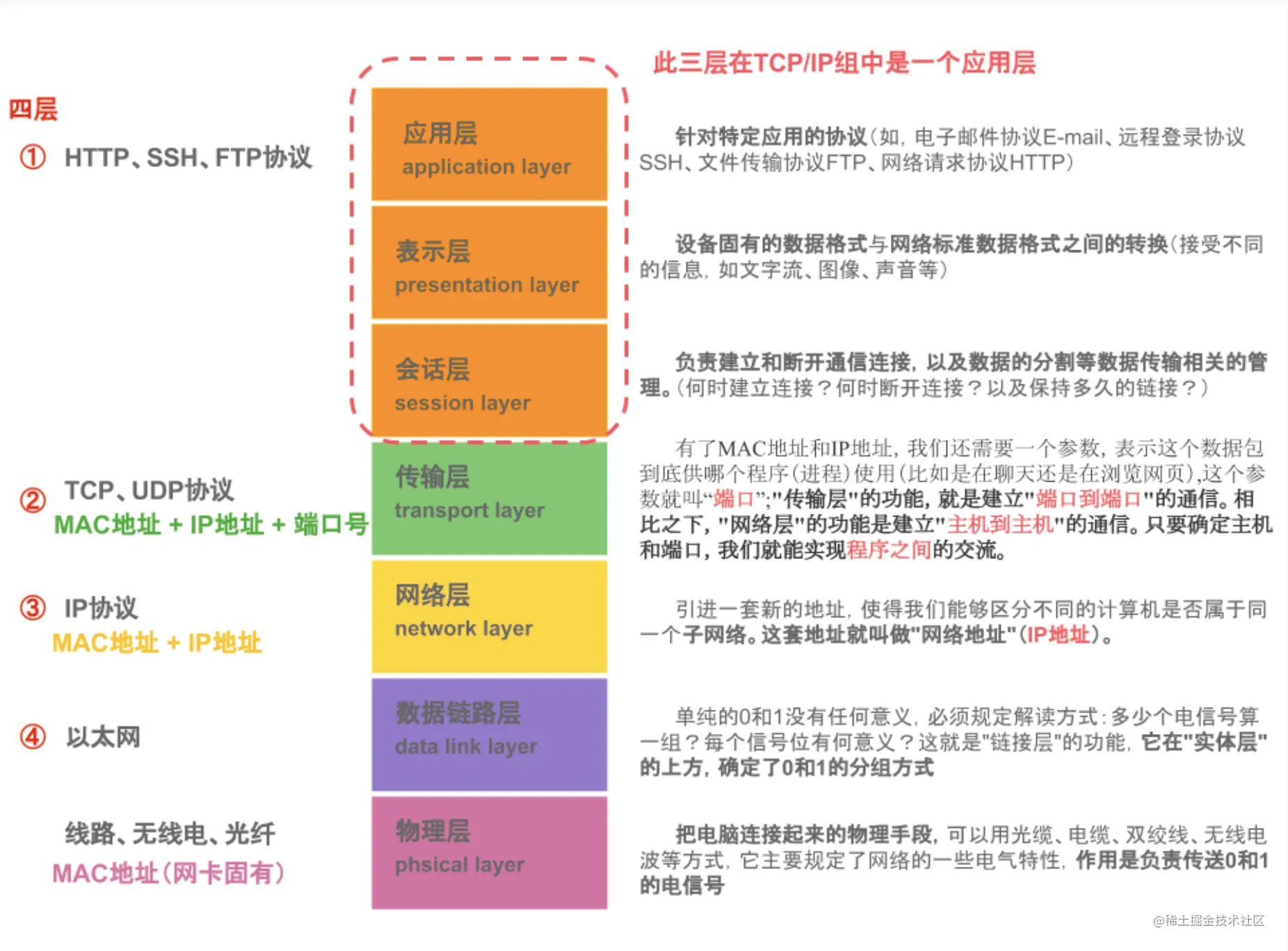 miller 发布于 2023-06-13 14:35:57 OSI 模型(未完待续) 补充:传输层的数据叫作段(segment),网络层的数据叫作包(packet),数据链路层的数据叫作帧(frame),物理层的数据叫作流(stream)。 计算机 浏览 (2529) 点赞 收藏
