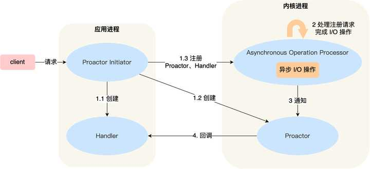 前面提到的 Reactor 是非阻塞同步网络模式,而 Proactor 是异步网络模式。