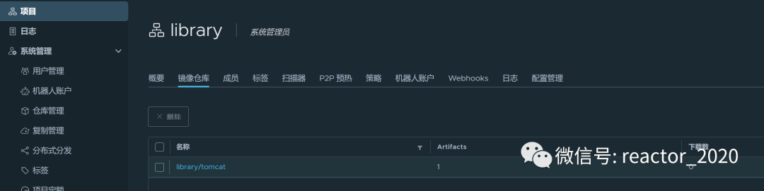 在harber管理界面查看,在 library 项目下就会存在刚才推送上来的tomcat镜像: