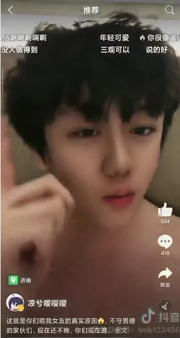 凉兮丝毫不避讳在社交平台直白表达自己的欲望,并直言自己至今仍是处男,对 “会所嫩模” 的行为大力鞭笞。对此,有网友给予了积极评价,甚至称呼他为男德导师。