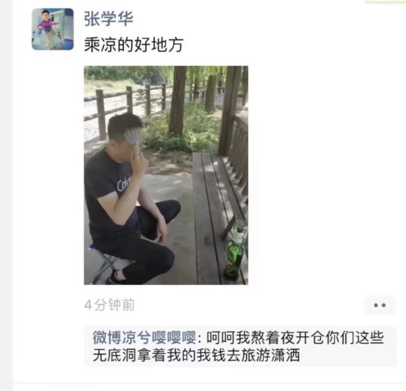 这一举动引发了凉兮的不满,甚至连朋友圈中的衣着都让他感到愤怒,“穿个 CK 把你牛的不行啊,终于有钱了是不,老子身上的衣服二十块钱一件。”
