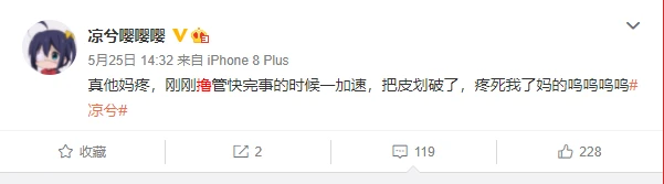 更为戏剧化的是,凉兮对于这件事情,似乎有着相同的看法,而且他对此毫不避讳。在其微博未遭封禁之时,这一关键词可搜出高达数十条结果。这也成为了凉兮微博中最为常见的内容之一。对他来说,这些只是日常解压的一种方式。