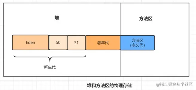 永久代的方法区,和堆使用的物理内存是连续的。