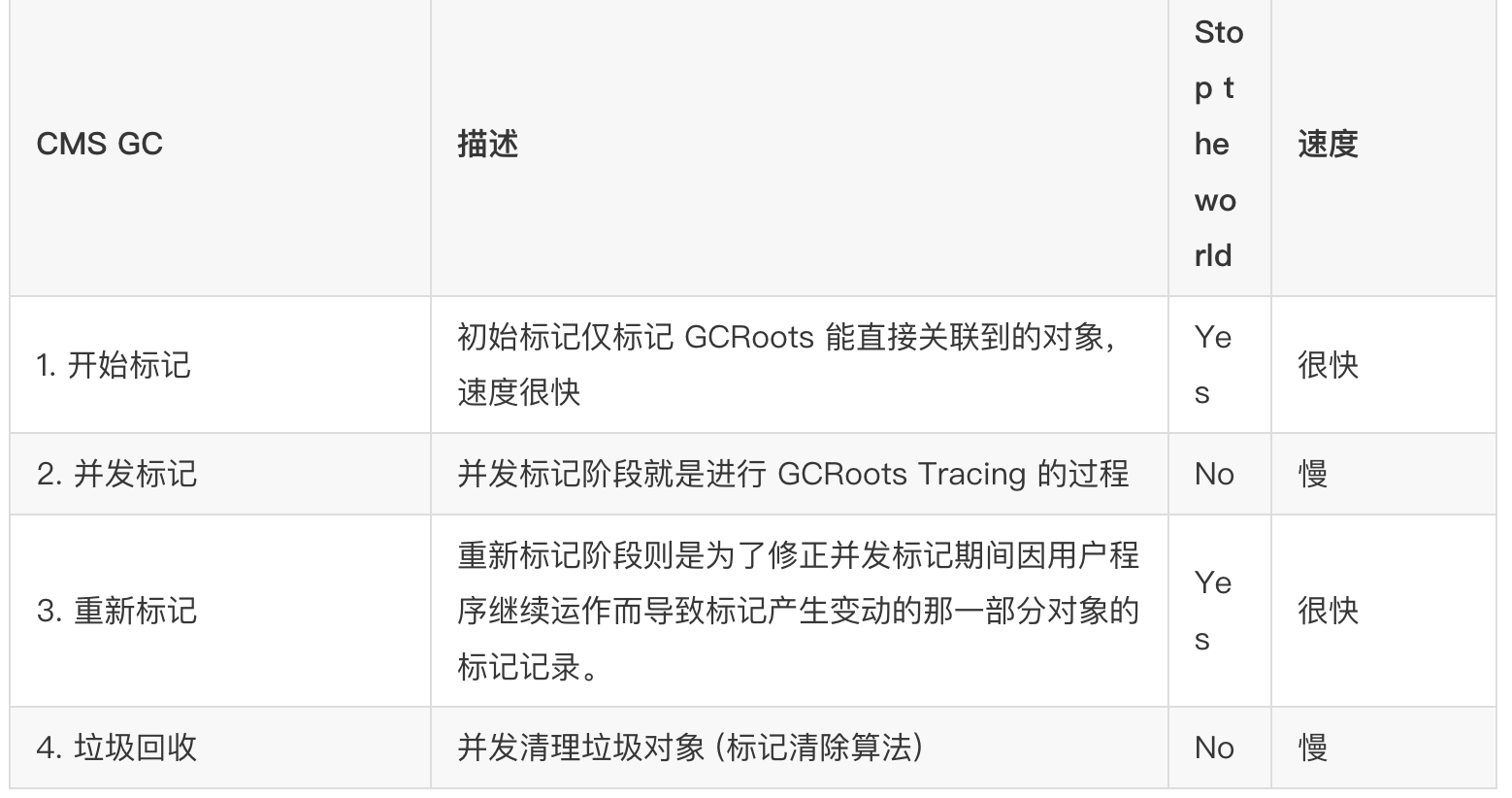缺点:1、消耗 CPU;2、浮动垃圾;3、内存碎片