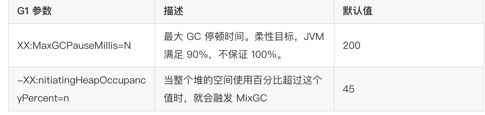 即调整 -XX:MaxGCPauseMillis=N参数,这也符合 G1 的目的——让 GC 调优尽量简单!