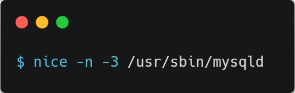 我们可以在启动任务的时候,可以指定 nice 的值,比如将 mysqld 以 -3 优先级: