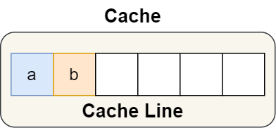 结构体里的两个成员变量 a 和 b 在物理内存地址上是连续的,于是它们可能会位于同一个 Cache Line 中,如下图: