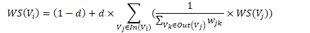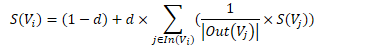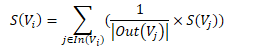 • In(V_i) 为 V_i 的入链集合,Out(V_j ) 为 V_j 的出链集合,|Out(V_j )| 是出链的数量,因此 V_i 自身的得分为: