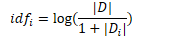 • 其中,|D | 为文档集中总文档数,|D_i | 为文档集中出现词 i 的文档数量。
